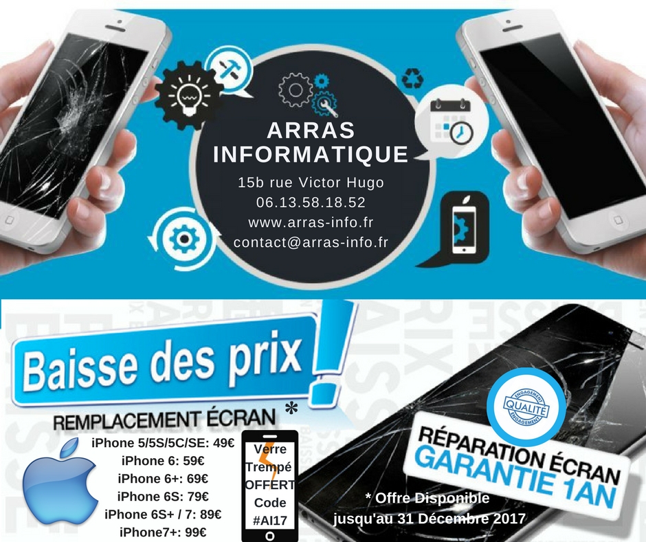 Atelier accessible depuis Lens, Douai, Béthune, Liévin, Hénin-Beaumont, Carvin, Avion, Achicourt, Beaurains, Saint-Laurent-Blangy et communes voisines du Pas-de-Calais. Arras Informatique & Mobile est un atelier local de réparation de téléphones, ordinateurs, tablettes et consoles de jeux situé à Arras - Artois - Pas de calais 62 .